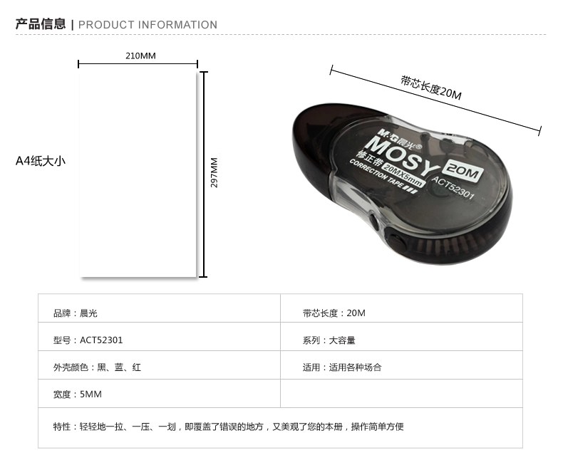 商品名称:晨光(M&G)ACT52301修正带大容量涂改带小学生用改正错带 (12卡/盒)