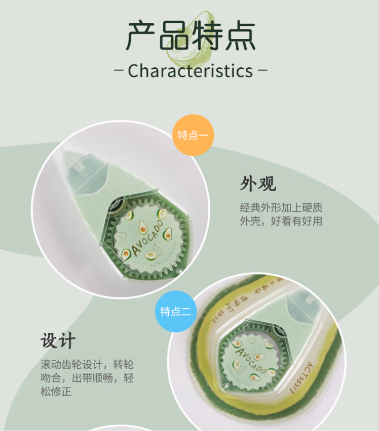 商品名称:晨光(M&G)ACT56513牛油果系列修正带改正带便携修改带 (12卡/盒)