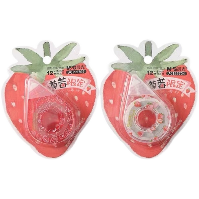 晨光(M&G)ACT55704草莓限定12M*5mm修正带透明PET带芯造型迷你小巧可爱流畅涂改带 (12卡/盒)