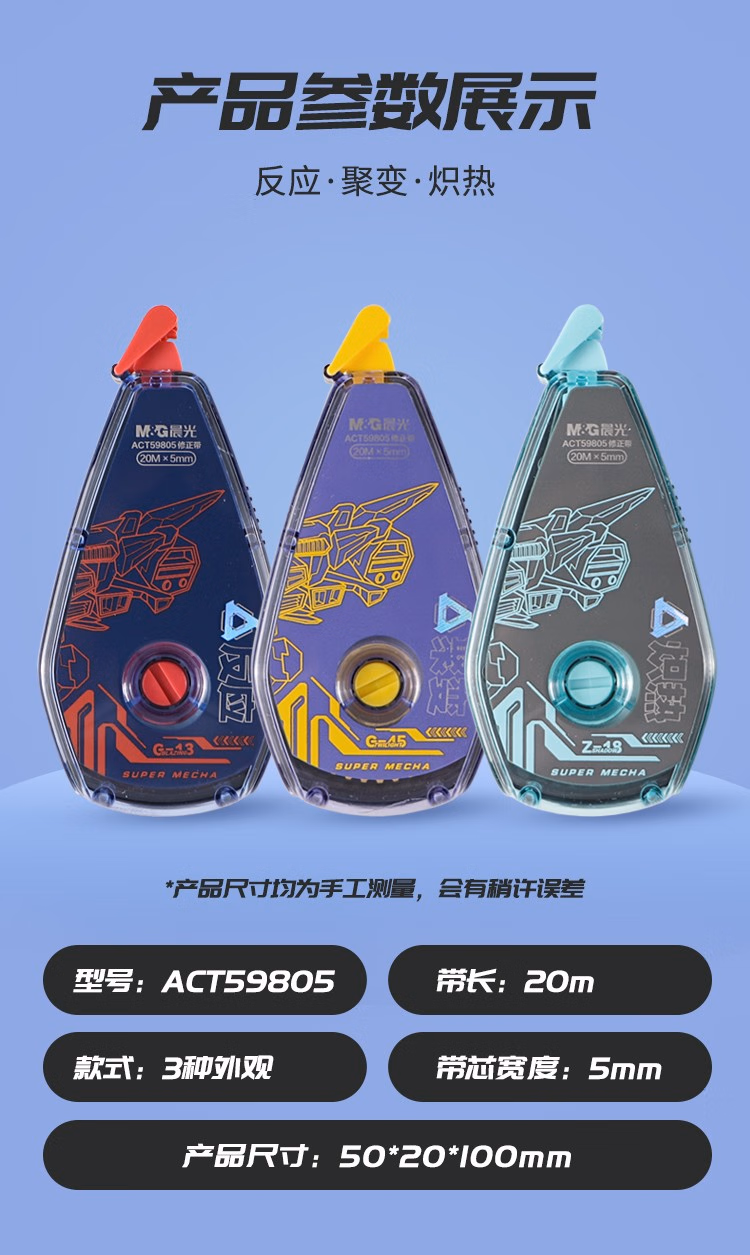 商品名称:晨光(M&G)ACT59805修正带 涂改带超能机甲系列修正带 (12卡/盒)