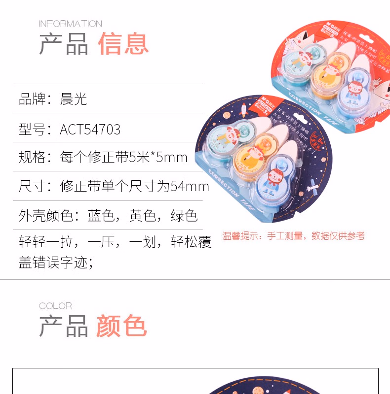 商品名称:晨光(M&G)ACT54703迷你修正带学生用涂改带5m优米小怪西游篇可爱改正带 (12卡/盒)