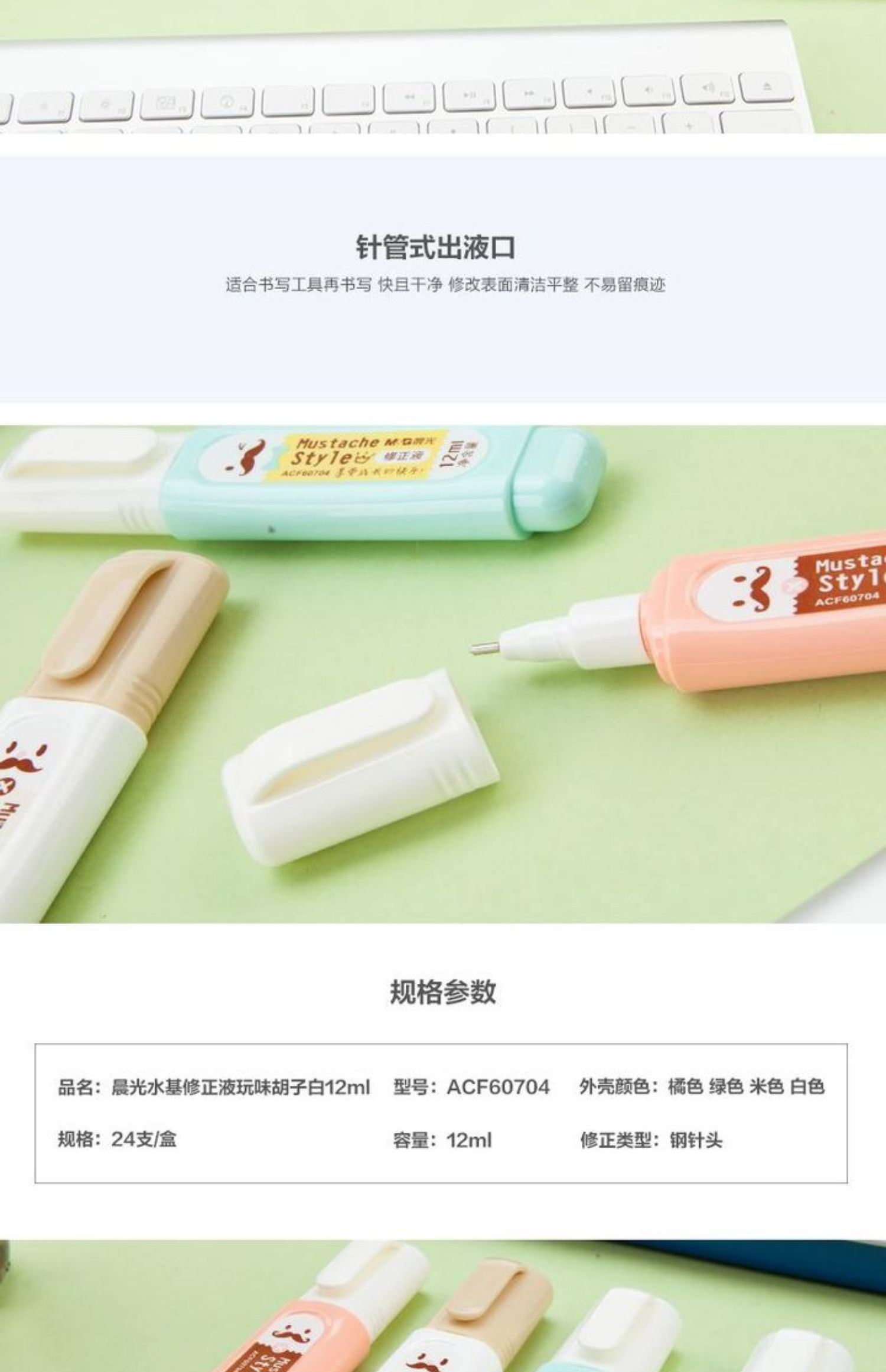 商品名称:晨光(M&G)ACF60704玩味胡子修正液涂改液12ML学生修正液 (24支/盒)