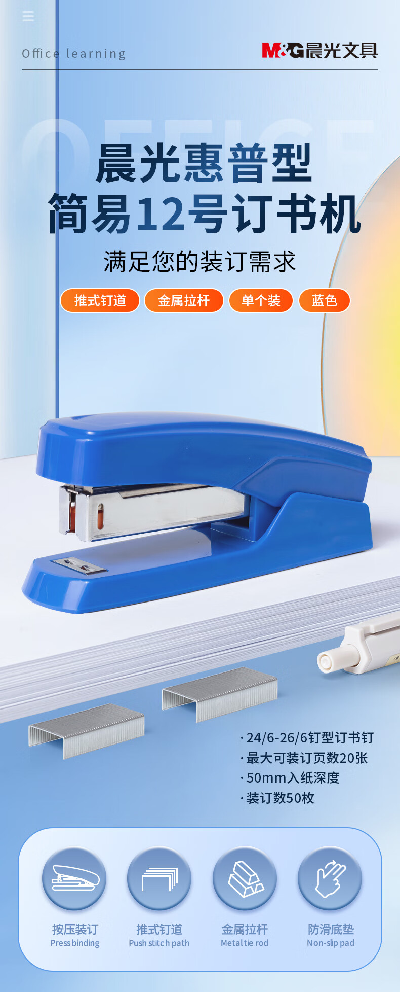 商品名称:晨光(M&G)文具12#订书机 便携商务耐用订书器 办公用品 蓝色单个装ABS916B4