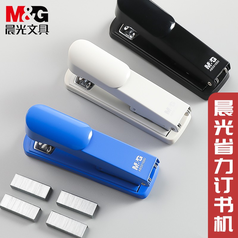 晨光(M&G) 订书机握感舒适长久耐用省力结构学生用订书器订书钉办公用文具 蓝色【ABS916B0】
