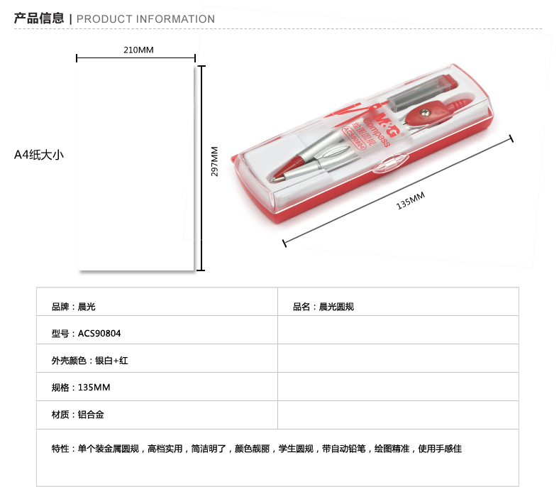 商品名称:晨光(M&G)ACS90804圆规套尺套装办公型套尺绘图制图工具绘图套装