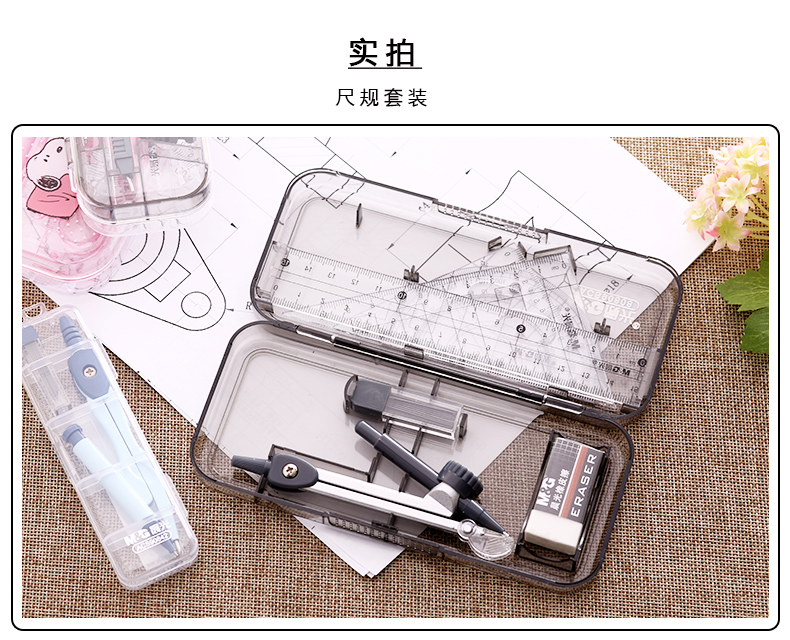 商品名称:晨光(M&G)ACS90808圆规套尺套装尺子尺规初中小学生用金属作图工具多功能