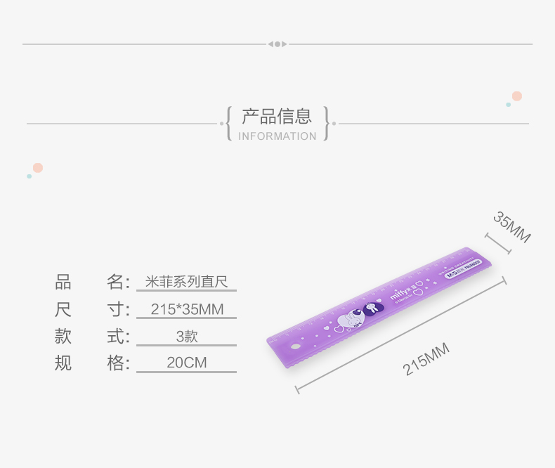 商品名称:晨光(M&G)FRL96007直尺 20cm 米菲系列尺子 中小学生塑料彩色尺子