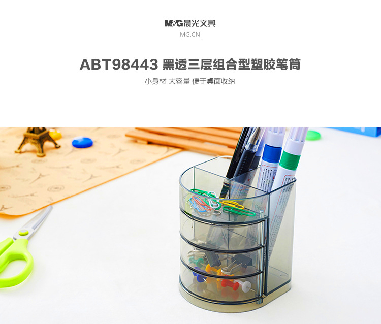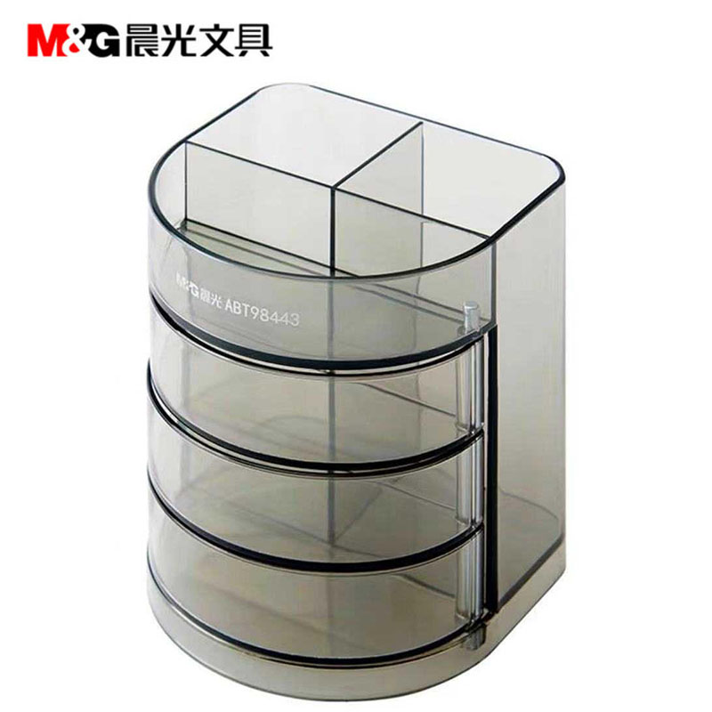 晨光(M&G)ABT98443学生办公创意时尚多功能笔筒灰色塑料透明四层笔筒