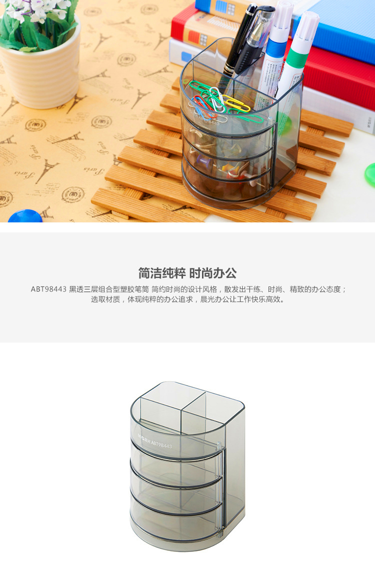 商品名称:晨光(M&G)ABT98443学生办公创意时尚多功能笔筒灰色塑料透明四层笔筒