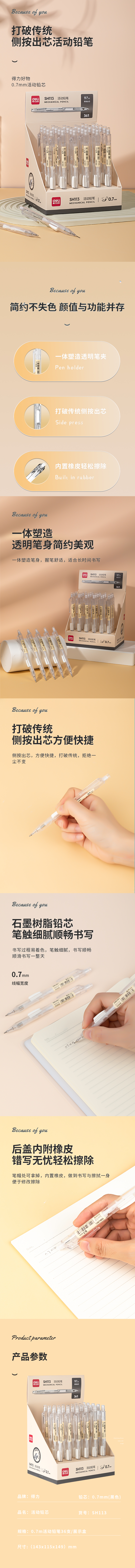 商品名称:得力SH113侧按活动铅笔0.7mm白色绘画按动铅笔写字笔 36支/展示盒
