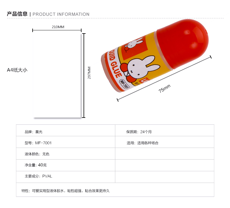 商品名称:晨光 MF7001高粘度液体胶 学生手工黏胶 米菲系列液体胶40ml (24支/盒)