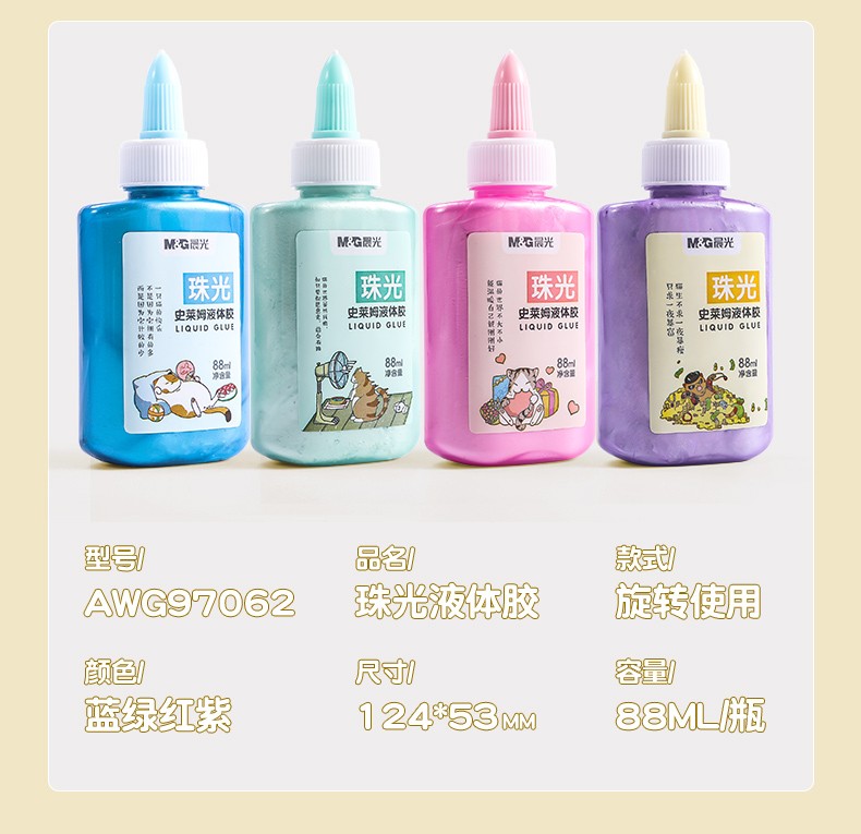 商品名称:晨光 液体胶史莱姆液体胶彩色珠光速干可水洗AWG97062学生专用模型贴 珠光胶(一支)