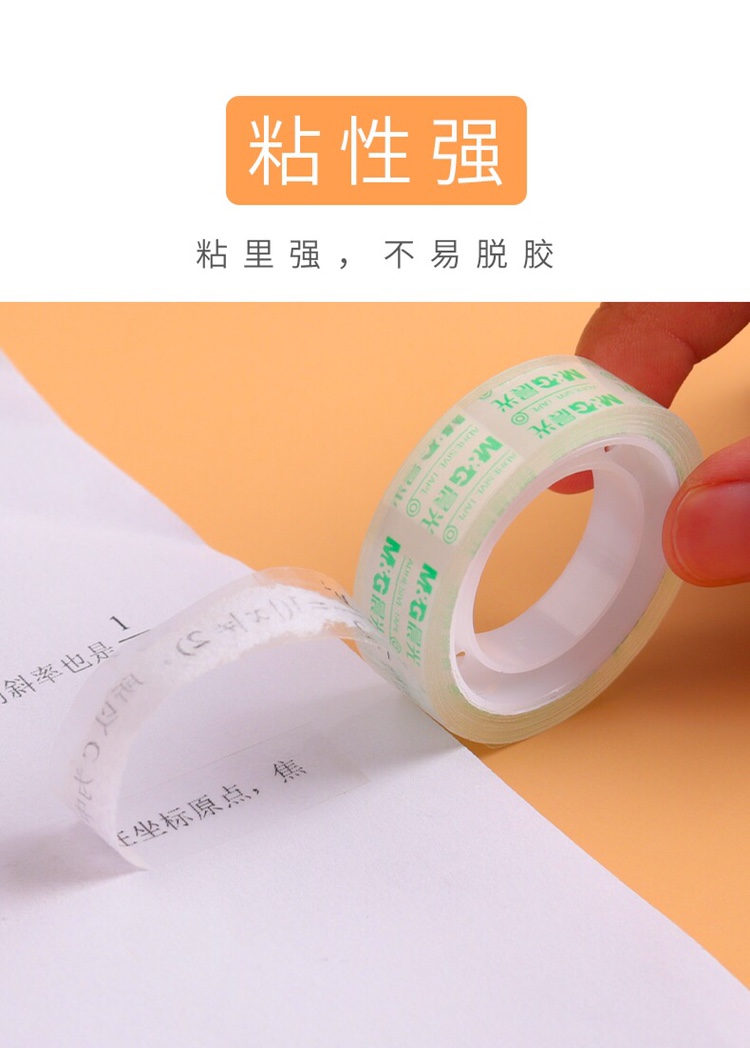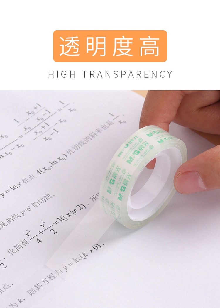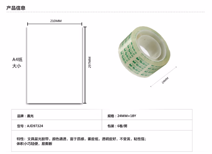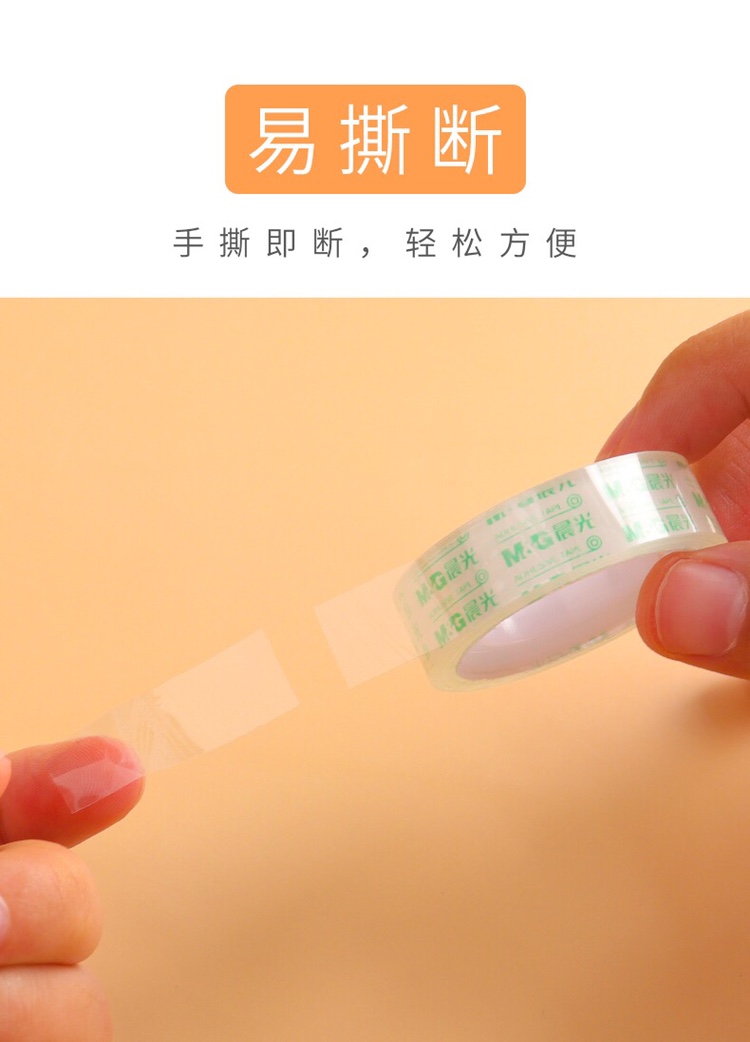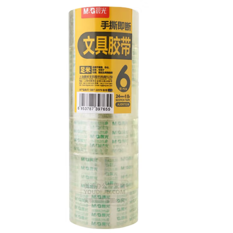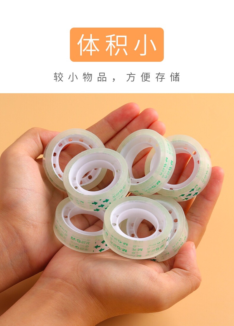 商品名称:晨光 AJD97324文具透明胶带小号学生专用胶纸细交带办公财务强力封口胶布环保封箱带 24mm*18Y (6卷/筒)
