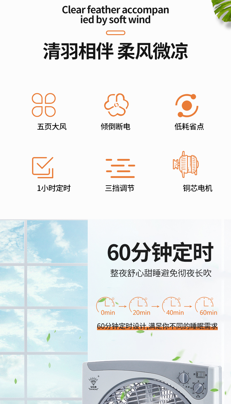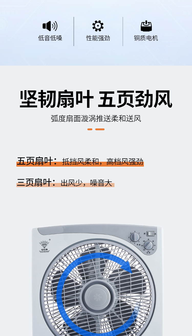 商品名称:钻石牌电风扇台式家用转页扇静音台扇鸿运扇床上小风扇宿舍电扇