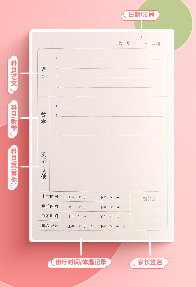 商品名称:晨光(M&G)APYAM837作业登记本 1-3年级小学生加厚家庭作业记录本 儿童作业本