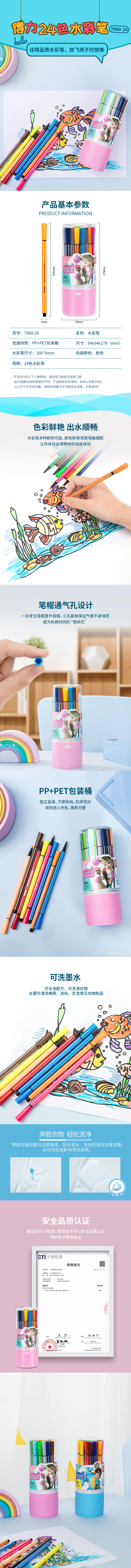 商品名称:得力7060-24可水洗水彩笔套装儿童幼儿园美术画画可洗绘画涂彩笔画画笔小学生 24支/粉桶