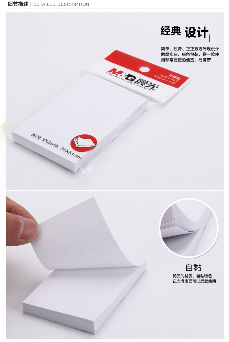 商品名称:晨光(M&G)YS-44便利贴学生用自粘便条纸简约纯白色优事贴(80页/包)
