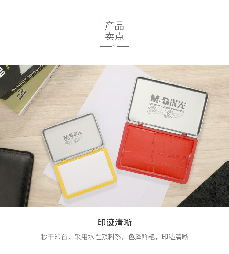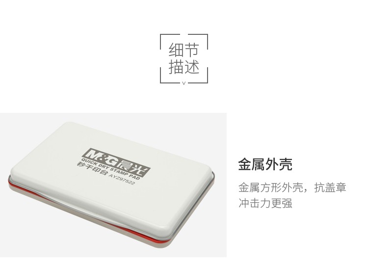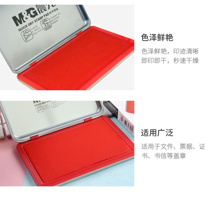 商品名称:晨光 秒干印台 大号长方形铁盒 红色印泥 AYZ97522一个装