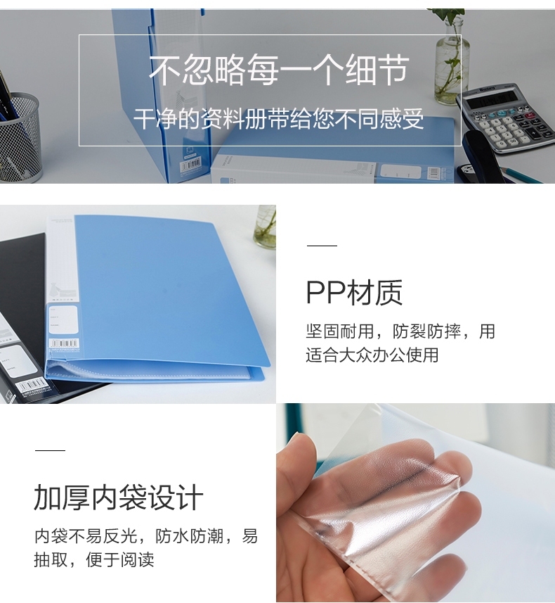 商品名称:晨光A4/30页资料册 文件夹插页夹办公资料夹文件夹资料册多层 蓝色1个装ADM95098B