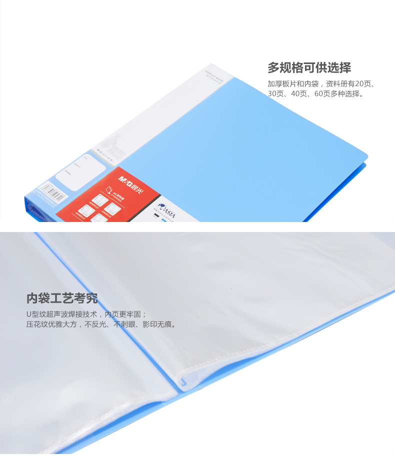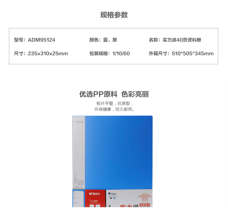 商品名称:晨光资料册透明插页夹资料夹办公资料夹 40页实力派 ADM95124 1个