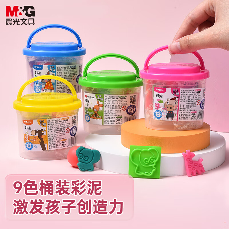 商品名称:晨光文具9色桶装彩泥 可爱卡通 儿童手工DIY玩具 橡皮泥套装 包装颜色随机AKE04001(一桶装)
