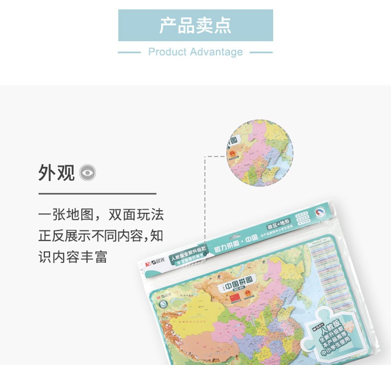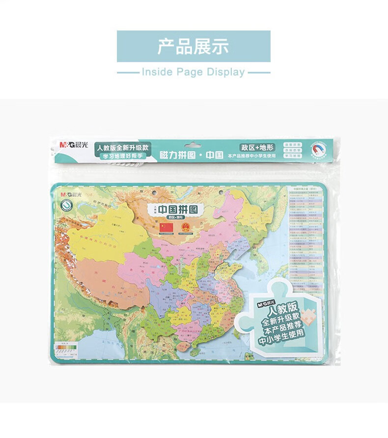 商品名称:晨光磁力中国地图拼图初中学生磁性大号世界教具中国地图6岁以上儿童益智玩具 ASD998G1中国地图A3(一张装)