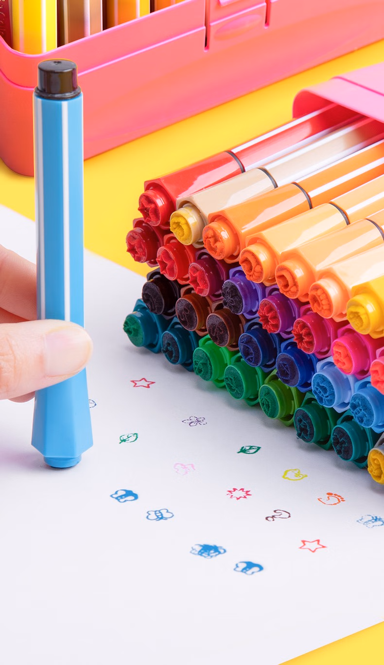 晨光(M&G)ACP92147水彩笔六角印章彩笔绘画笔可水洗涂鸦绘画笔 外观颜色粉色/蓝色 (12色/盒)