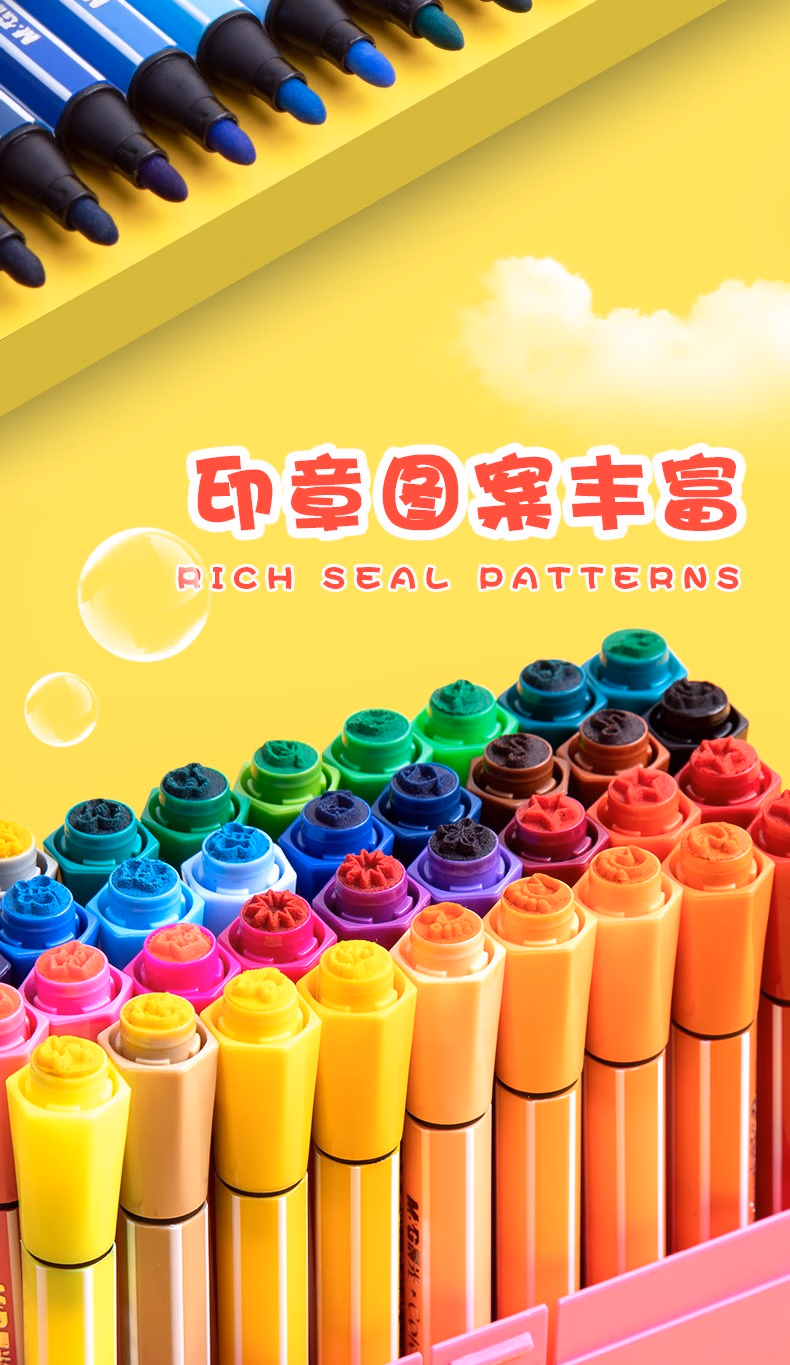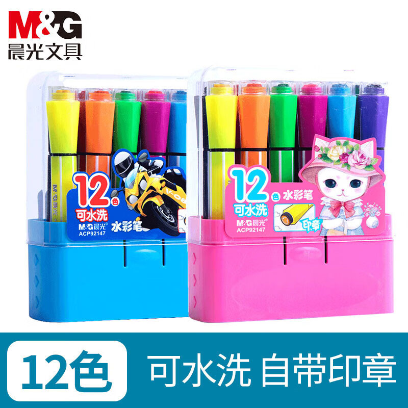 商品名称:晨光(M&G)ACP92147水彩笔六角印章彩笔绘画笔可水洗涂鸦绘画笔 外观颜色粉色/蓝色 (12色/盒)