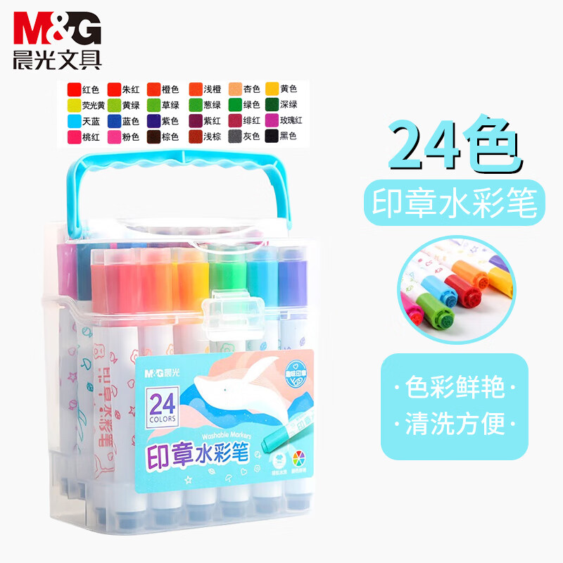 商品名称:晨光(M&G)ACP901E3印章水彩笔涂鸦绘画儿童可水洗水彩笔套装儿童幼儿园(24色/盒)