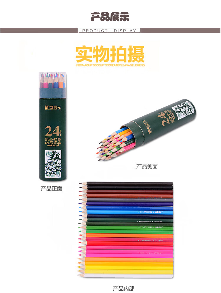 商品名称:晨光文具AWP34305 24色油性彩色铅笔 学生美术绘画填色 六角杆一筒装
