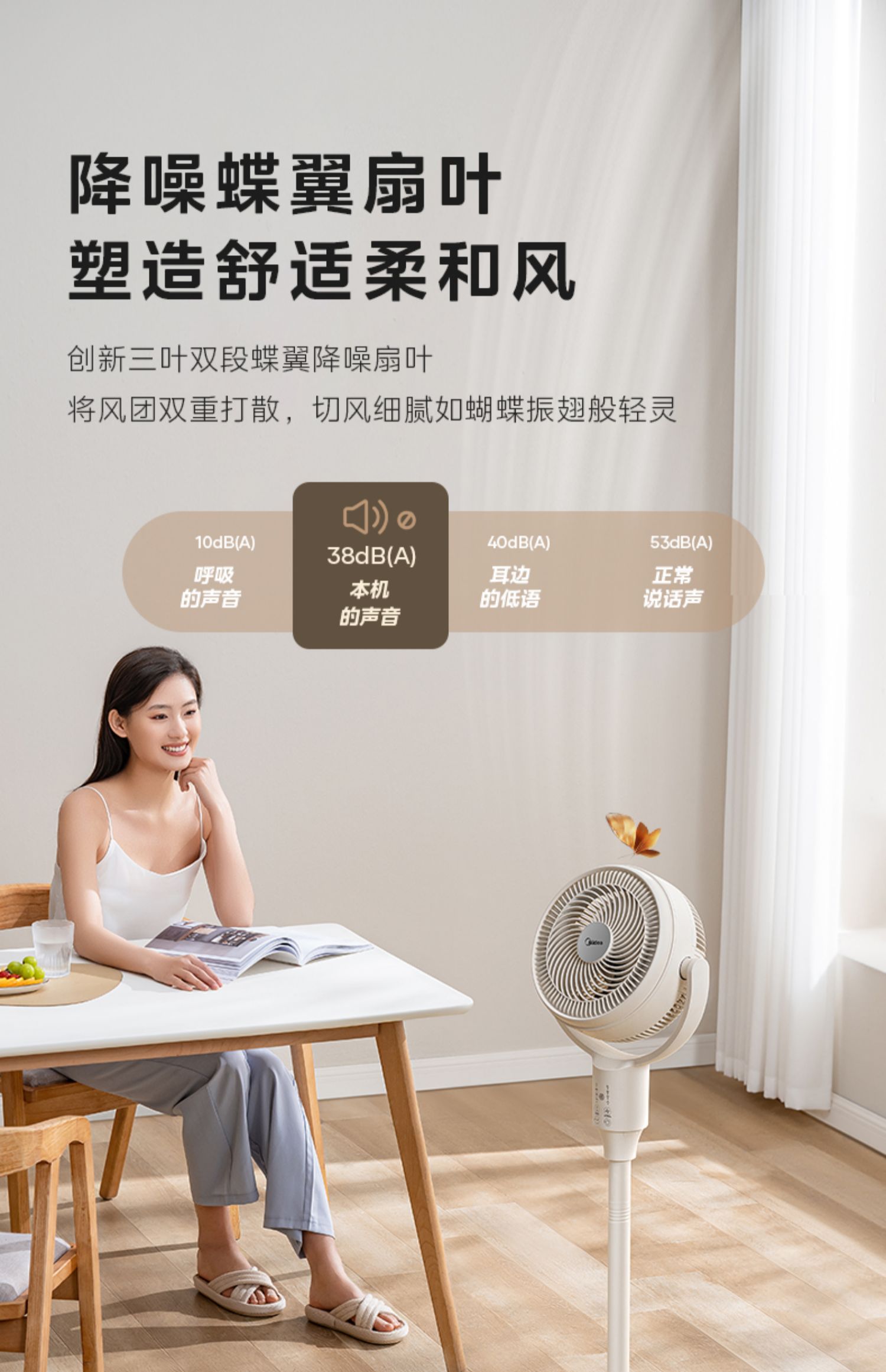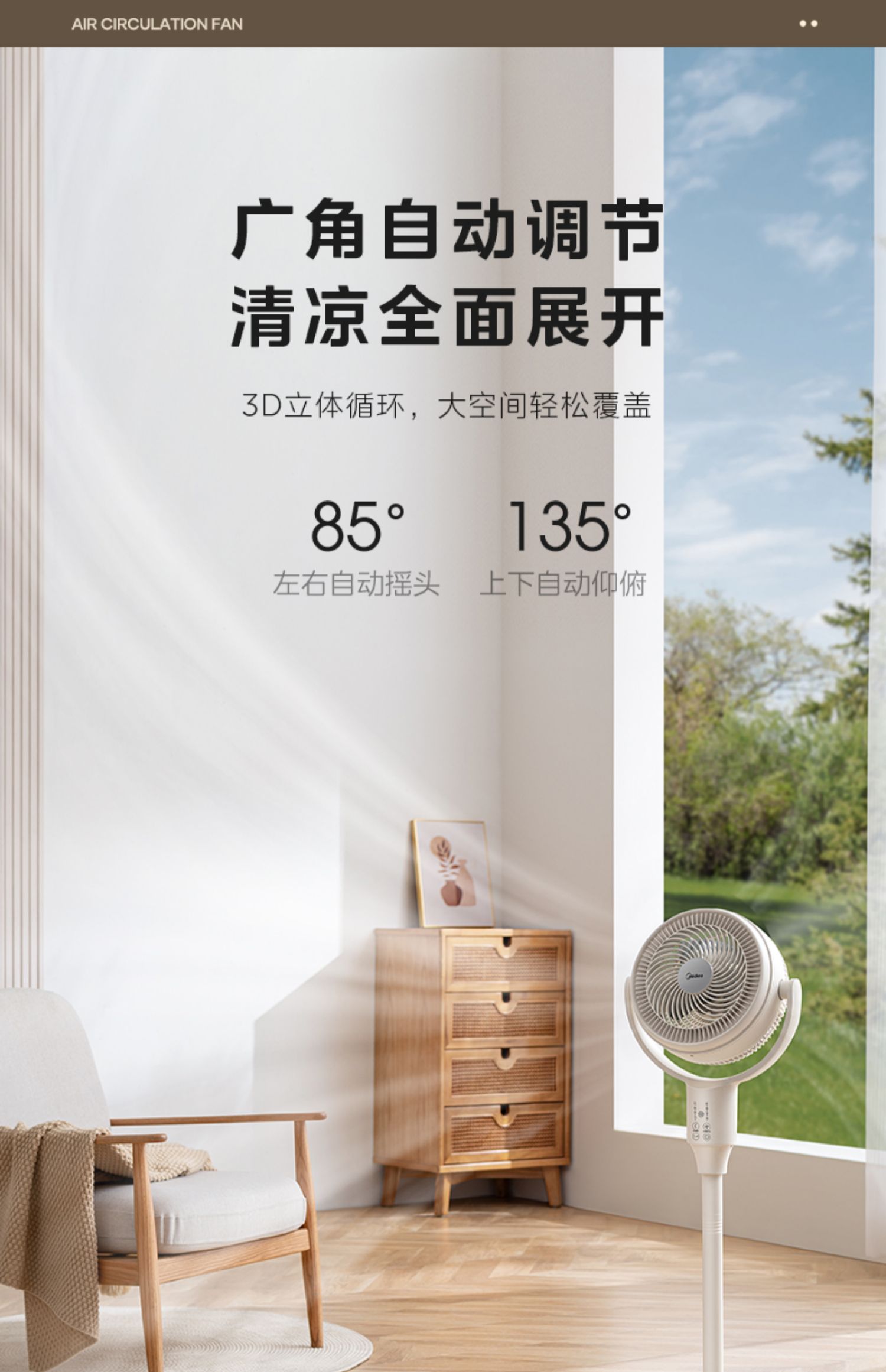 美的 FGA24UJR 家用空气循环扇台地两用电风扇遥控节能静音3D立体落地扇
