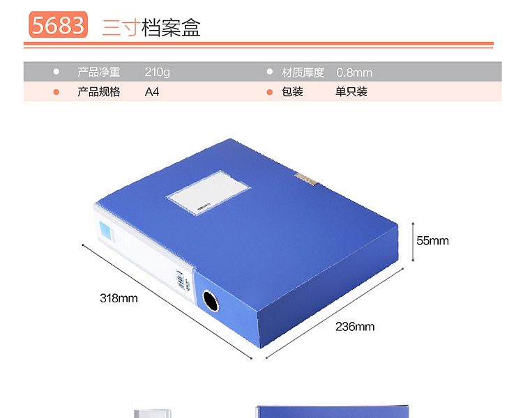 商品名称:得力5683 55mmA4 加厚塑料文件盒档案盒资料盒 单个