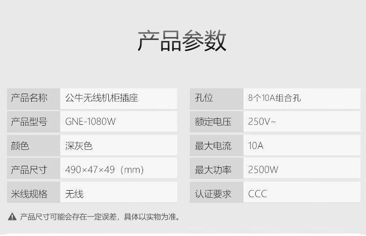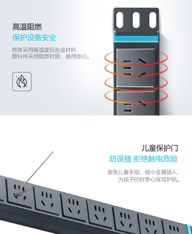 商品名称:公牛 GNE-1080W PDU机柜插座8位1.8米电源插座