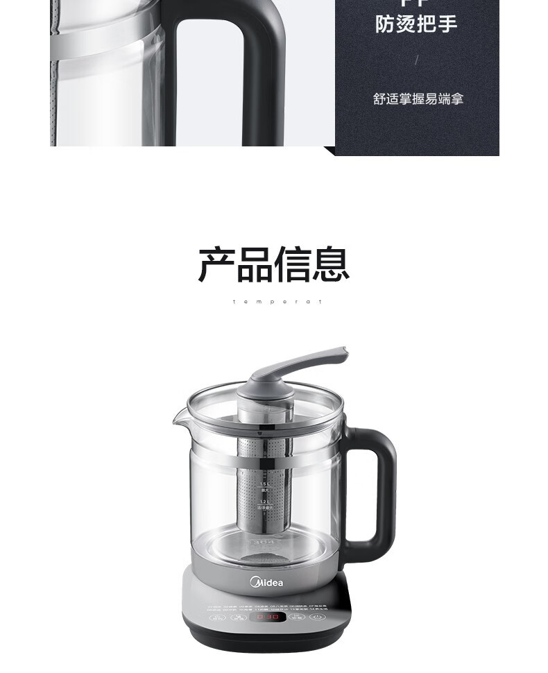 美的 电热水壶 一机多用 多功能电水壶烧水壶 1.5L容量智能 YSNC1506B
