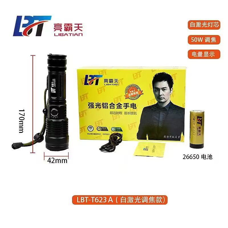 商品名称:亮霸天 LBT-T623A 白激光调焦款强光铝合金手电筒 170*42cm 50W 【58】