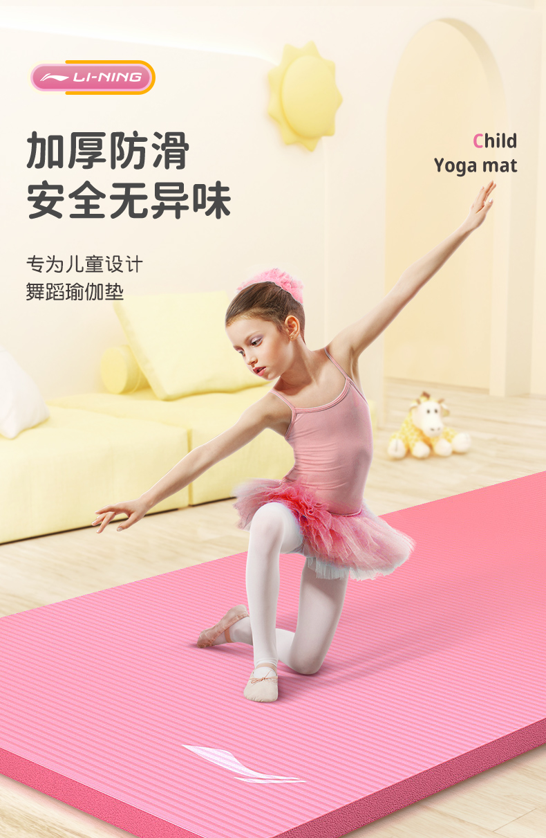 李宁 LBDM792 运动健身垫瑜伽垫 1850*800*15mm 紫/粉/蓝/灰 【67】