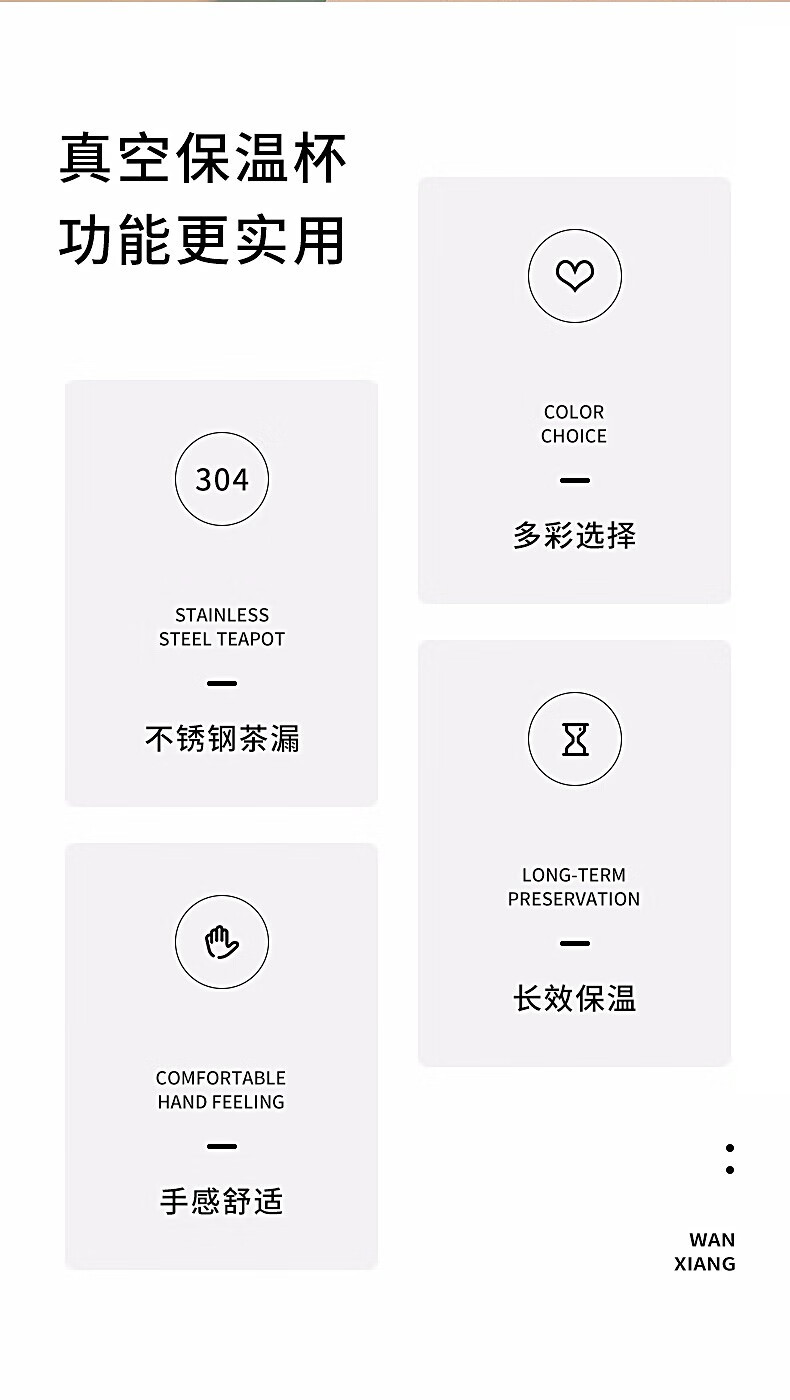 商品名称:万象 H79 保温杯360ml 304不锈钢真空保温杯 65*165mm 黑/绿/红 65*165mm【76】