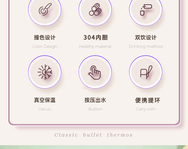 华象 HX1083-2 经典子弹头保温杯 304不锈钢 300ml 65*190mm 粉/绿/棕 【100】