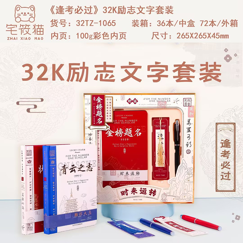 宅筱猫 32TZ-1065《逢考必过》32K励志文字套装 手账本/中性笔/流苏书签 265*265*45cm【107】