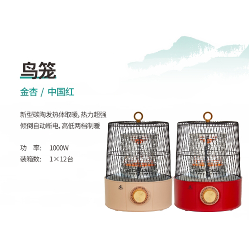 商品名称:小霸王 鸟笼 鸟笼式电暖气 1000W 倾倒自动断电 金杏/红【148】
