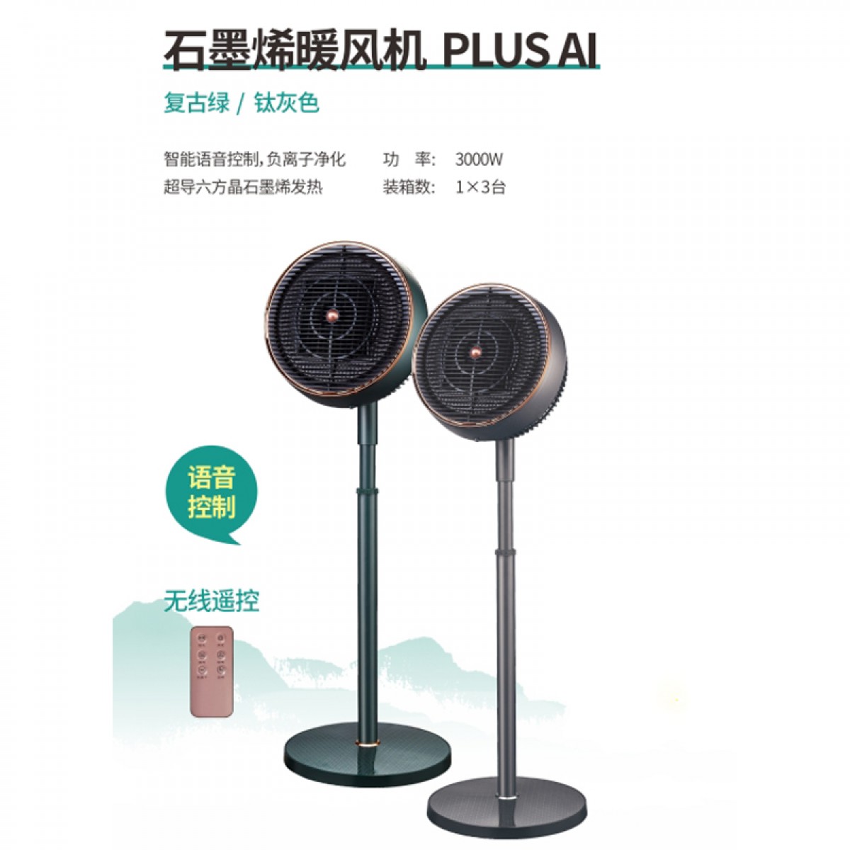 商品名称:小霸王 石墨烯暖风机 PLUS AI 3000W 智能语音控制负离子净化 绿/灰【151】