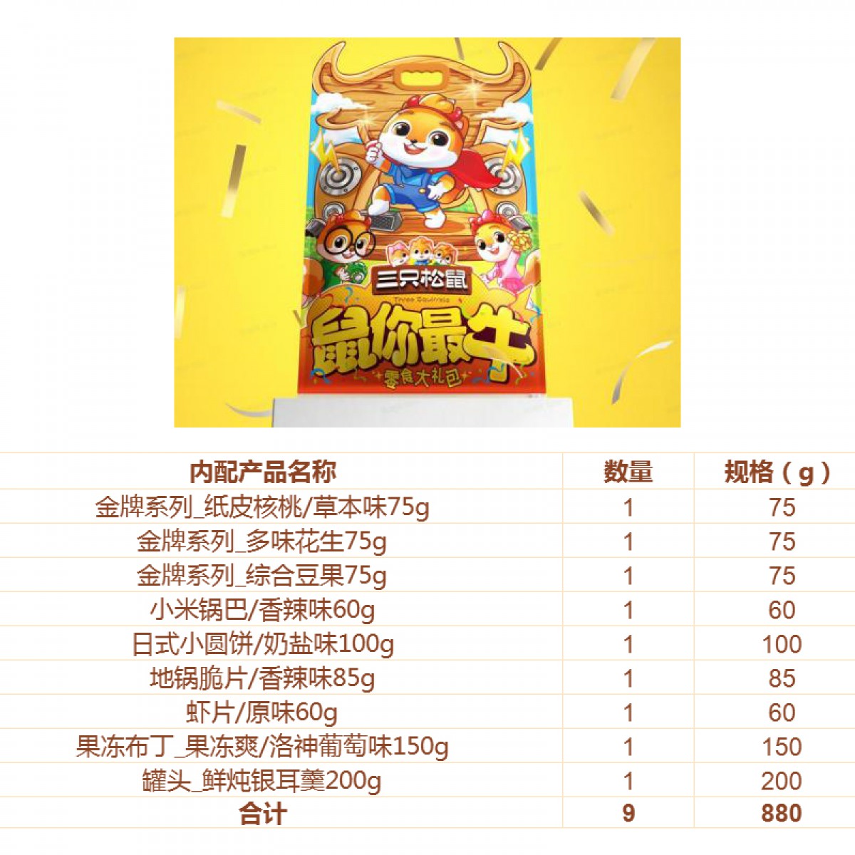 商品名称:三只松鼠 鼠你最牛零食大礼包 880g 668*400mm【165】