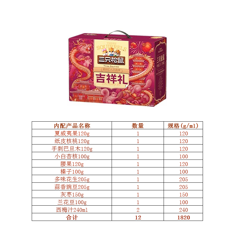 商品名称:三只松鼠 森林礼/吉祥礼/1820g 410*290*180mm【170】