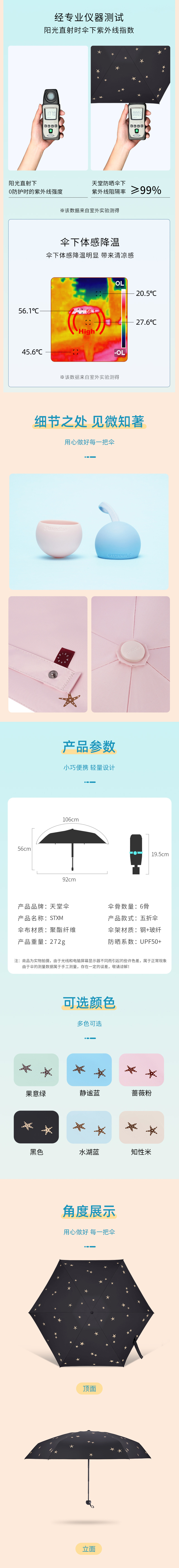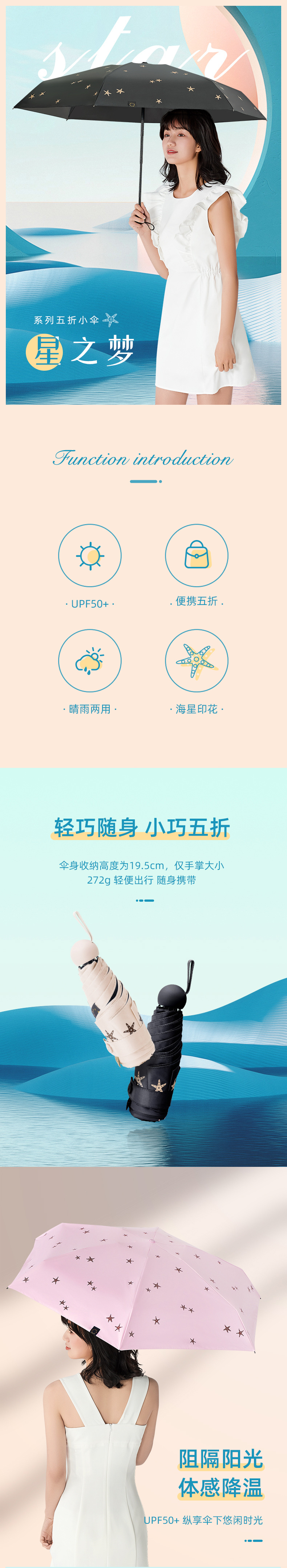 商品名称:天堂伞 51121E 沙滩星梦 五折晴雨伞晴雨两用 19cm【223】】