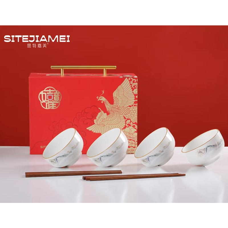 思特嘉美 四碗四筷陶瓷碗礼盒套装【240】