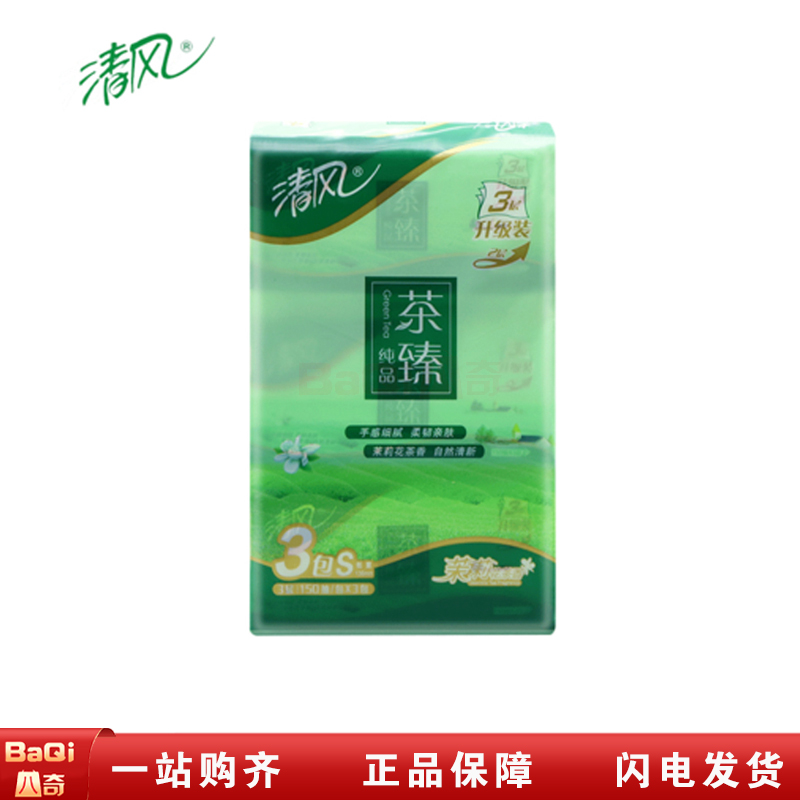 商品名称:清风 BR37SGZ 绿茶茶臻纯品抽取式面巾纸餐厅餐巾纸3层150抽卫生纸整箱3包