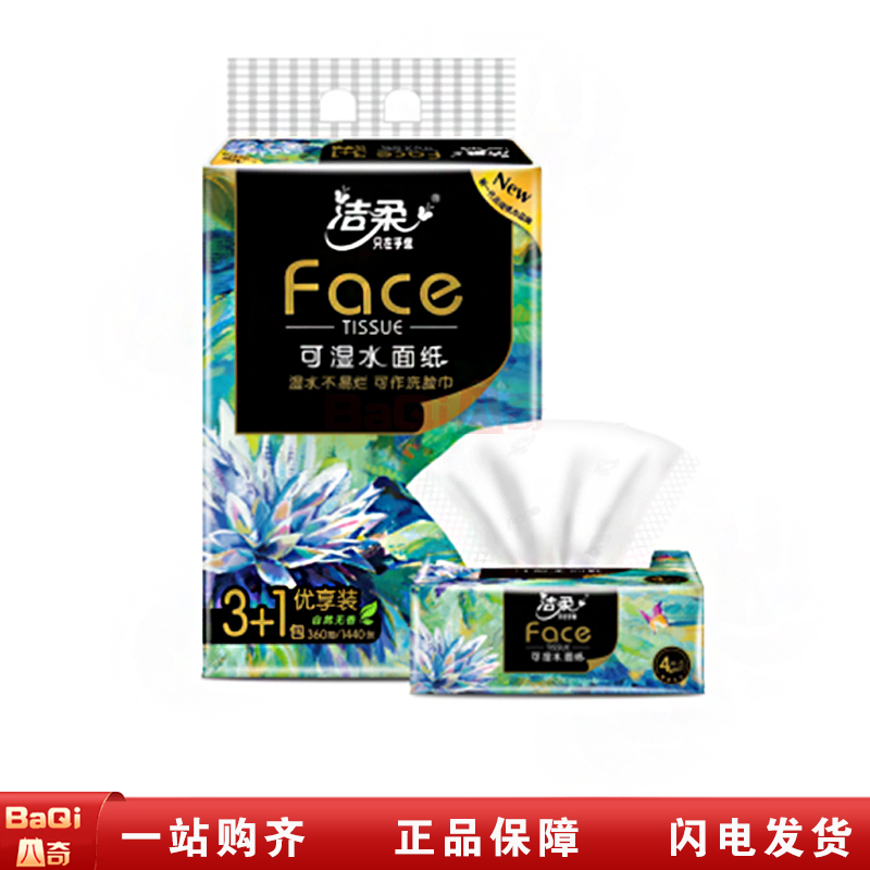 商品名称:洁柔 抽纸face艺术油画纸巾加厚4层90抽4包可湿水面巾纸卫生纸餐巾面纸抽家用整箱实惠装 1提共4包BR088-4