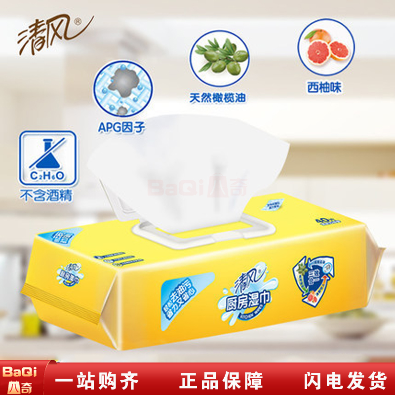商品名称:清风/qingfeng BWC40 厨房纸巾40片清新西柚香珍珠纹除污不含酒精
