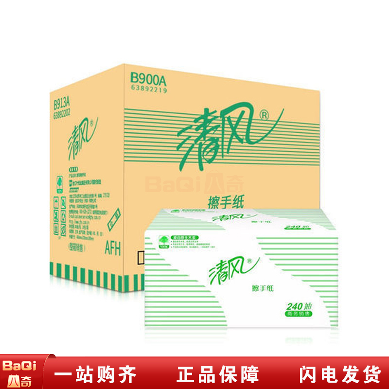 商品名称:清风 B900A 卫生间擦手纸二折 240抽 /包 单层 20包/箱