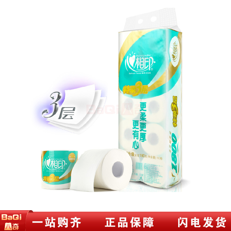 商品名称:心相印 BT810 卷筒纸 卫生纸心柔纸巾180g有芯卷纸面巾3层纸餐巾纸10卷/提(6提/件)